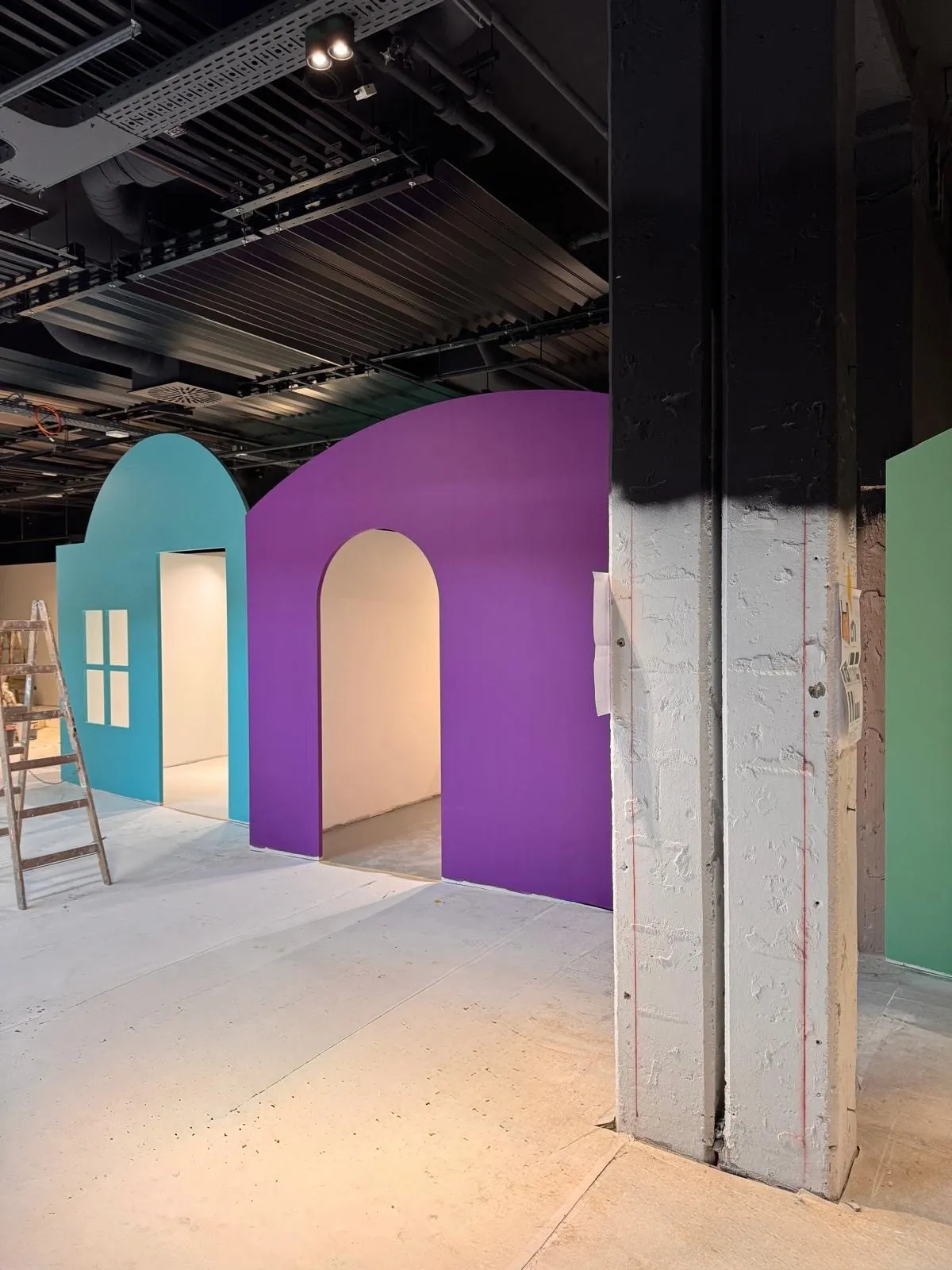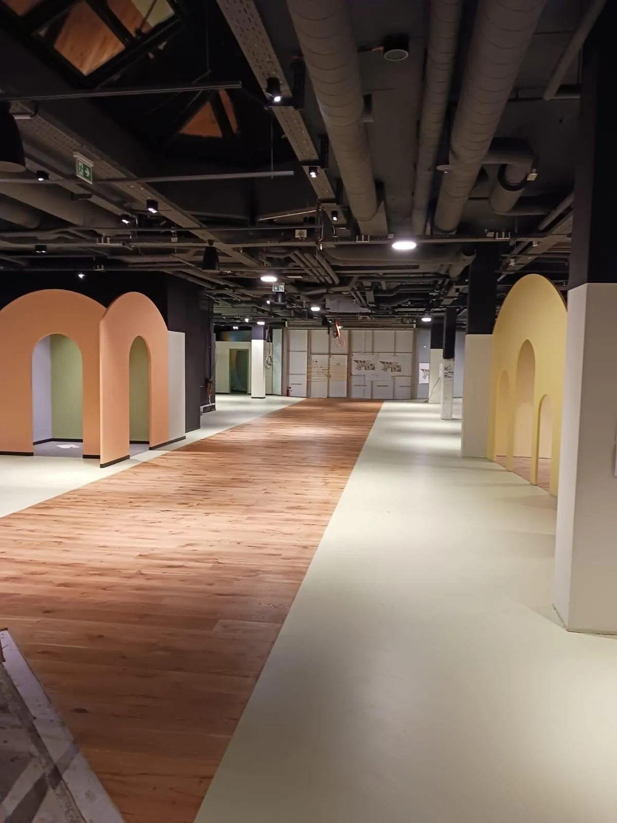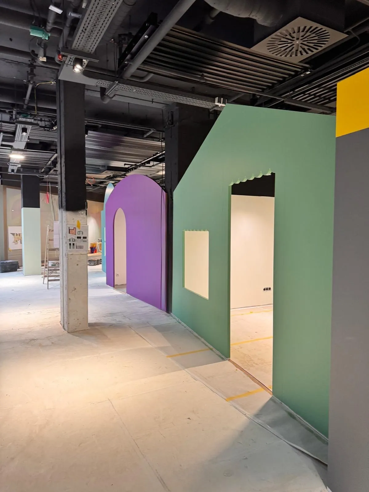 Auf der Baustelle sieht man inzwischen sehr gut, wie die verschiedenen Welten von Spilly Luxemburg entstehen. Die ersten Räume und Formen werden sichtbar und geben ein Gefühl dafür, wohin sich das Interior Design Konzept weiterentwickelt.