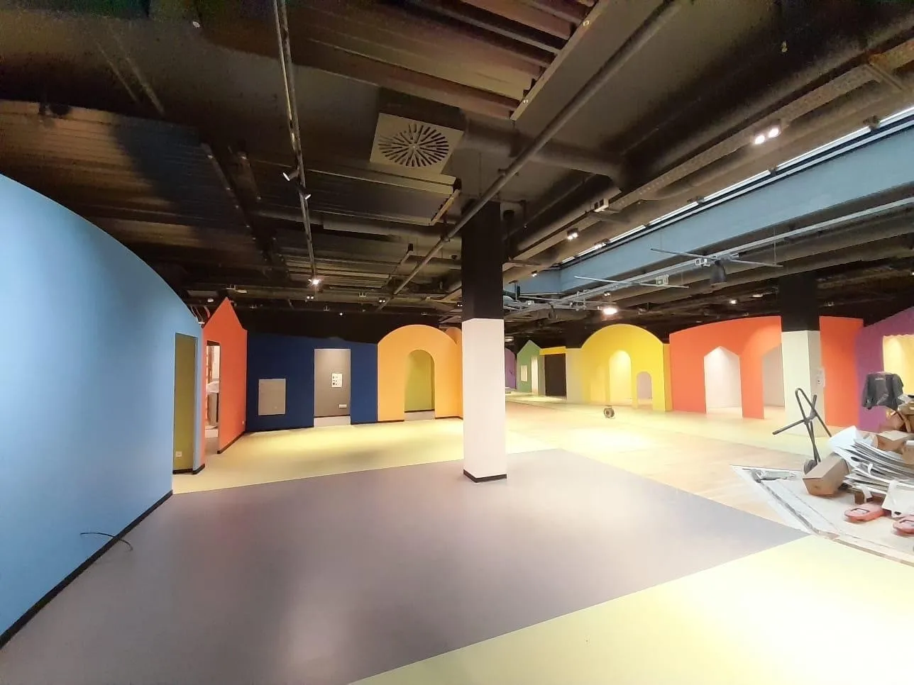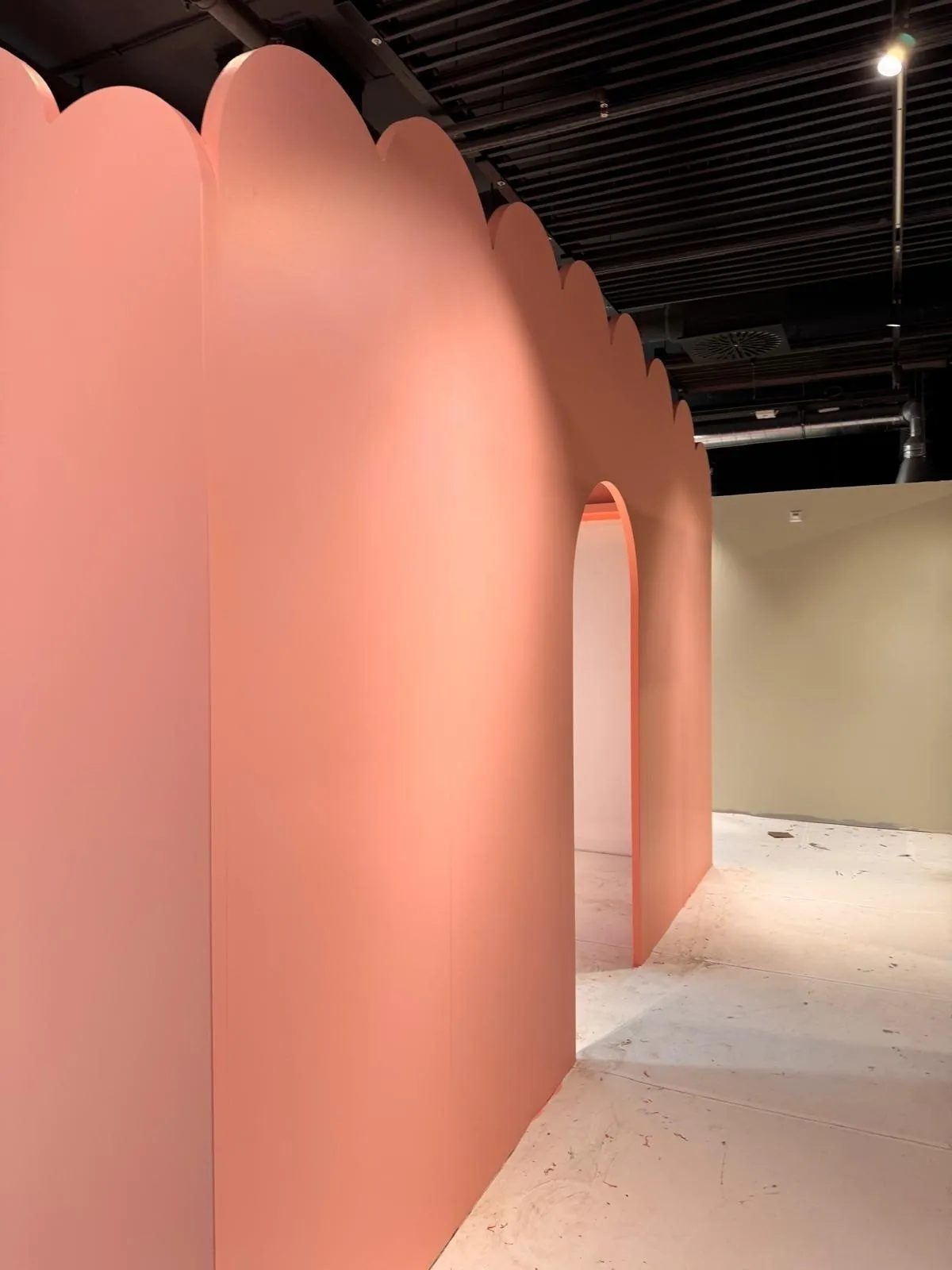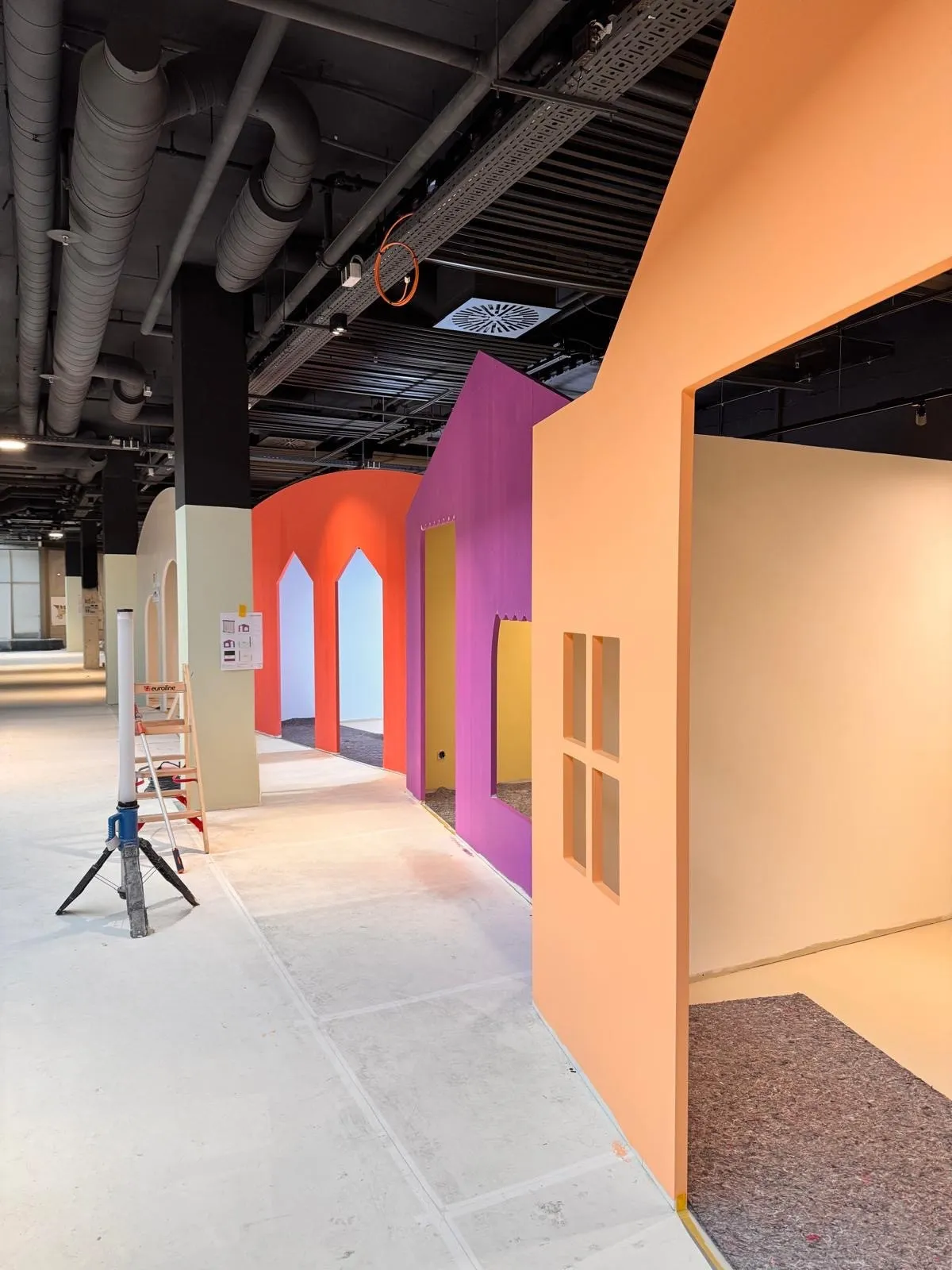 Auf der Baustelle sieht man inzwischen sehr gut, wie die verschiedenen Welten von Spilly Luxemburg entstehen. Die ersten Räume und Formen werden sichtbar und geben ein Gefühl dafür, wohin sich das Interior Design Konzept weiterentwickelt.