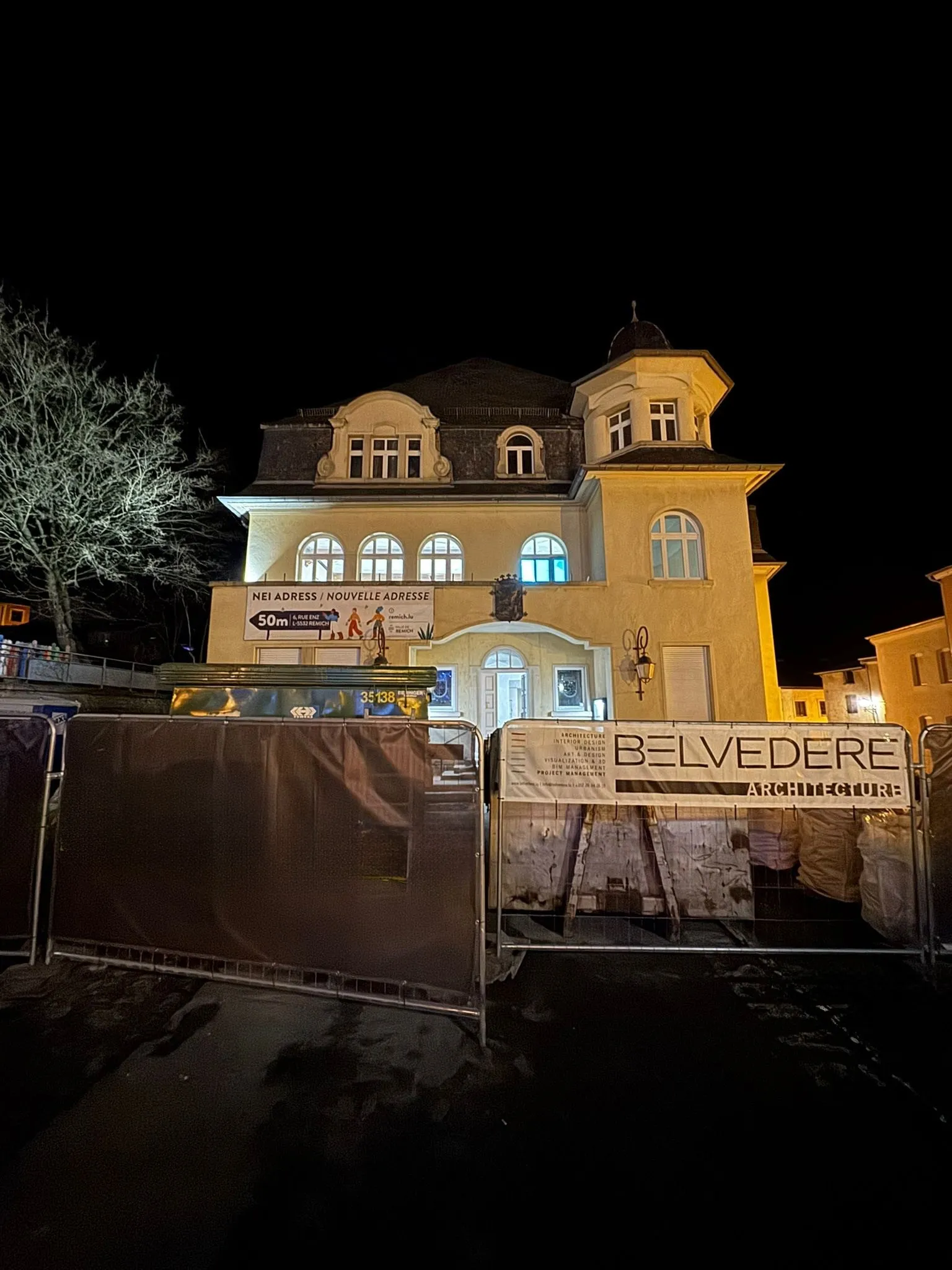 Während der Bauphase sind die Funktionen des Rathauses inklusive Bürgerkontakt vorübergehend in einem benachbarten Gebäude untergebracht.