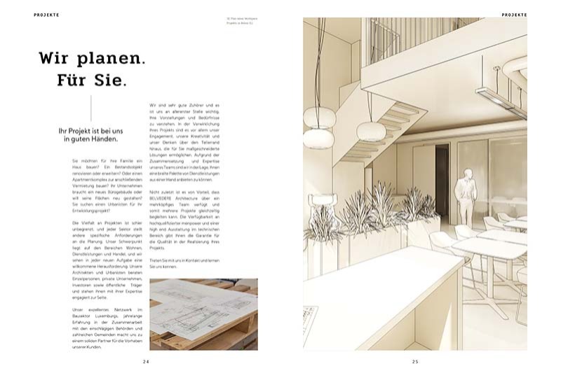 This new brochure will give you a comprehensive overview of our services and projects as well as our team. BELVEDERE Architecture supports you in all aspects of your planning and construction projects in the fields of architecture, interior design, urban and spatial planning, project management, BIM management and 3D & visualisation.