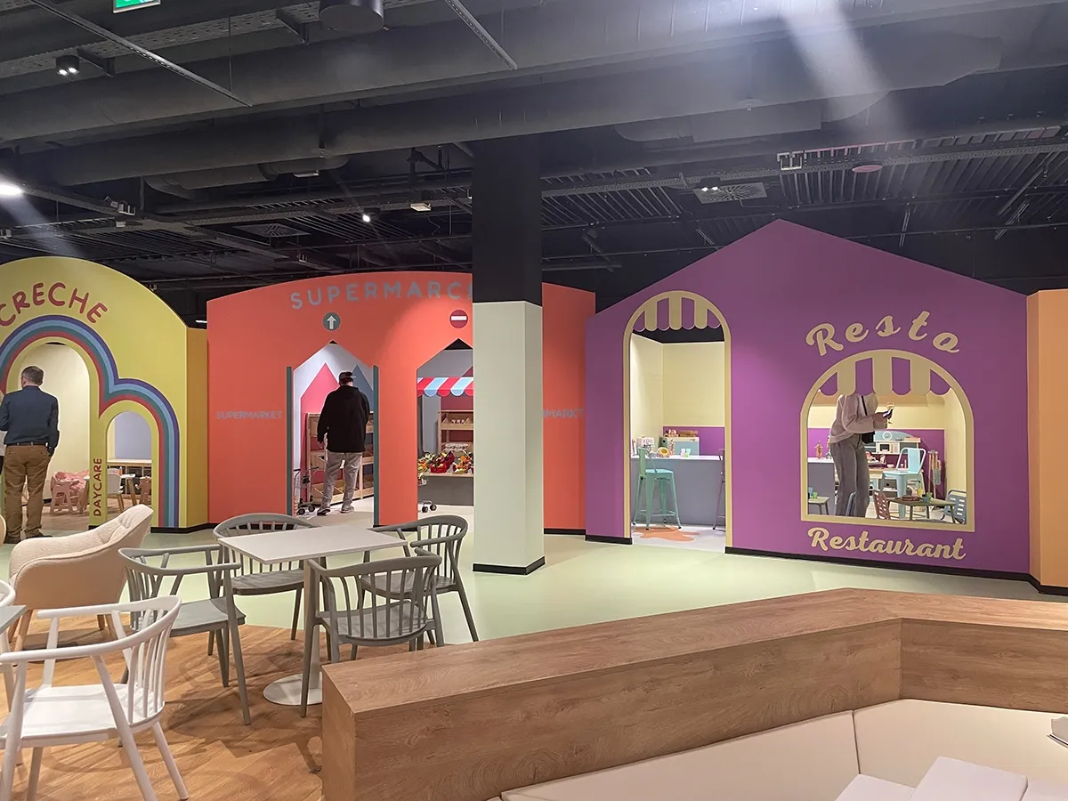 Déployé sur plus de 700 m², le concept prend la forme d’une mini-ville à hauteur d’enfant. Les enfants de 2 à 11 ans peuvent y explorer différents univers thématiques favorisant l’autonomie, l’imagination et la compréhension des rôles sociaux. Un espace spécifique a été aménagé pour les plus petits.